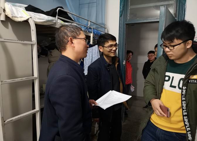 为扎实落实“三进”要求,及时掌握在校大学生学习生活情况,加强学风和寝室文明建设,3月12日下午,计算机工程学院党总支书记袁飞带领全体辅导员班主任对该院学生宿舍开展了全面检查工作。 此次检查的重点内容是了解学生日常生活和学习情况,宿舍水电安全问题、桌椅稳固情况、宿舍卫生等。期间,袁飞对各宿舍情况进行深入了解,询问同学们的生活学习情况,并嘱咐大家严格遵守校规校纪,按时休息,养成良好的作息习惯,营造安全、温馨、文明、和谐的宿舍环境。对检查中存在的问题及安全隐患,各辅导员一一如实记载,同时要求同学们加强安全意识,做到有问题及时上报,切实维护自身安全。 通过宿舍检查工作,学院更加了解了学生的在校情况,同时也督促同学们养成良好的生活习惯,提高自我约束、自我管理能力,为创建和谐文明的校园环境奠定基础。(撰稿:朱程)