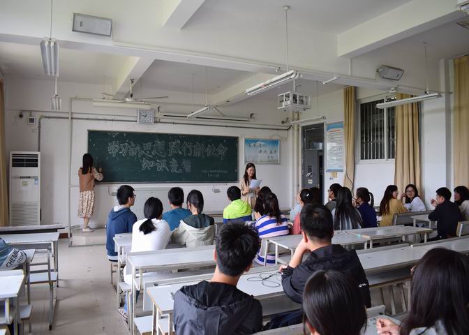 515日,24支团队进入知识竞答决赛环节,角逐最终晋级的16个名额。参赛团队均发挥出最强的实力,经过两轮抢答,比赛推向高潮,进行最后一轮的现场论述。现场论述主要考察同学们对党的理论知识的理解、综合应用能力及现场表达能力,充分体现了同学们对习近平新时代中国特色社会主义思想的思考和领悟。
