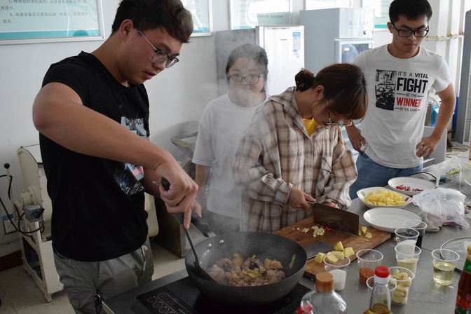 自古以来,民以食为天,为引导同学们注重健康饮食,树立健康生活理念,6月1日,计算机工程学院联合经济与管理学院共同举办了“炊金馔玉,舌尖争霸”厨艺大赛,挖掘同学们探寻美食的潜能,寻找舌尖上的美味。 此次比赛要求每道菜以30分钟为上限,赛程主要分为两个环节——厨艺大比拼和菜品展示。在比赛的过程中,各组参赛选手合理分工,有条不紊地准备着自己的参赛作品,切法刀工各有千秋。在烹饪的环节中,各式佳肴竞相绽放,现场弥漫着诱人的香味,一盘盘五彩缤纷的菜式,一幕幕挥勺舞锅的场景,引得各位评委和观众浮想联翩,舌尖上情意绵绵。在规定的时间内,各小组都捧出了自己精心制作的菜肴,选手们选用最常见的菜式做出了不一样的风味。菜品命名也是花式百出,有用诗句命名的“燕草如碧丝”、“落红春泥”,有赋予象征意味的“爱恨相连”、“人生百态”……无论是外观还是味道都令评委赞叹不已。最后评委根据成品菜的色感、形感、香感、味感等方面对各参赛队伍进行了打分,整个现场气氛浓烈,俨然一场“美食嘉年华。” 此次厨艺大赛提高了同学们食品安全意识和团队合作意识,丰富了校园文化生活,也传播了饮食文化,倡导勤俭节约新风尚。(撰稿:涂友兰)