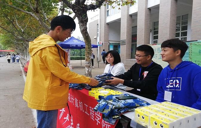 军训服是大学生活的第一份珍贵的记忆,为了让它更有价值,用这份美好回忆去温暖他人,让迷彩服继续散发余热。计算机工程学院青年志愿者协会于2019年10月11日在图书馆主干道开展了以“回收爱心,温暖他人”为主题的军训服募捐活动。 此次活动持续两天,由于志愿者们事先已经通过网络宣传,计算机工程学院青年志愿者协会志愿者们会在图书馆主干道指定位置等待同学们前来捐赠自己的军训服,志愿者们也会向还不了解活动的同学们介绍此次活动并鼓励他们捐献自己的军训服。当同学们把手中的迷彩服递给青协志愿的时候,青协成员们面带微笑地一句“谢谢”和同学们略显腼腆的微笑,他们的相视一笑勒出一条条温暖的曲线。此次军训服募捐活动不仅收到了很多同学们送来的军训服,还有的同学给志愿者们送来了自己的旧衣物。 志愿者们收到的不仅仅只是军训服装,更多的是同学们满满的心意,相信志愿者们会把这份永不褪色的爱传递下去,为社会增添一份暖意。希望通过这次活动,提高同学们的奉献意识,让大家学会利用身边的微小资源,去完成一次次充满爱的活动。(撰稿:唐秀娟)