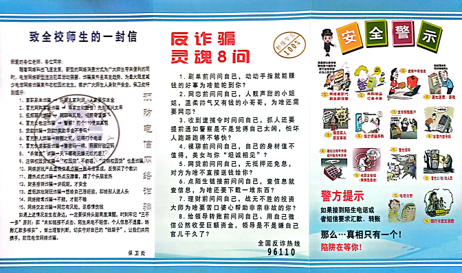 为提高我院学生对电信网络诈骗的识别和防范能力,推进落实学校创建“无诈学院”“无诈班级”活动,太阳成集团tyc9728于近日组织召开防范电信网络诈骗专题班会,确保班级和学生全覆盖、无遗漏。 在防范电信网络诈骗专题班会上,辅导员要求每一位同学均要下载国家反诈中心APP,开启国家反诈中心APP的诈骗预警功能,引导学生精准识别并预警诈骗电话或短信。同时,发放“防范电信网络诈骗”相关宣传手册,带领学习新型诈骗手段,如冒充司法机关工作人员、虚构中奖信息、网络兼职刷单、网络购物返现等。辅导员结合典型电信网络诈骗案例,提醒同学们不要轻信来历不明的电话和短信、不要轻易透露身份证和银行卡信息,如接听可疑来电后要及时拨打电话向辅导员和家人进行询问和查证。 下一步,我院将在全覆盖进行防范电信网络诈骗专题教育班会的基础上开展“防范电信网络诈骗”知识竞赛活动,进一步提高同学们的防范意识,增强同学们识骗和防骗技能,维护校园和谐安全稳定。(撰稿:崔婉君)