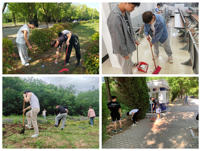 以劳强体,主题活动健身心 教室及实验室打扫、校园场所清洁志愿服务、劳动教育实践基地开垦种植等形式多样的实践活动,强烈激发了广大学生的劳动热情。在学院的组织带领下,各专业学生纷纷拿起扫帚、扛起锄头,在劳动中尽情挥洒汗水,在实践中充分感悟快乐,以劳动创造幸福,让劳动强健体魄。