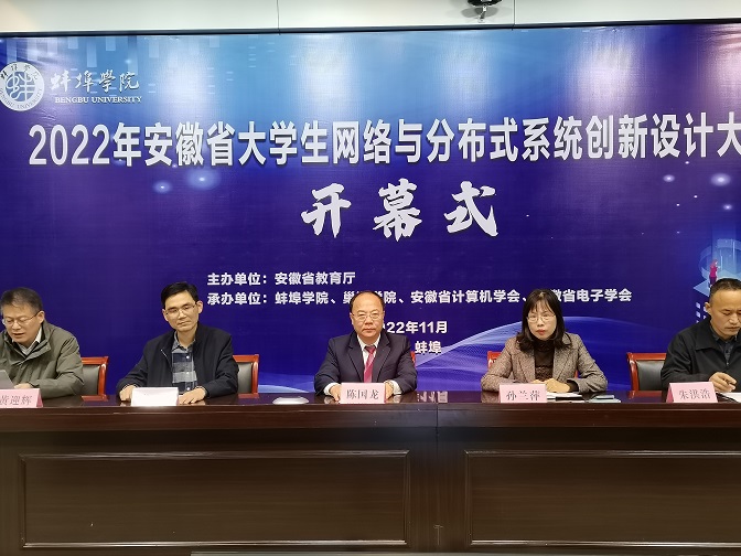 11月13日,由安徽省教育厅主办,9728太阳集团、巢湖学院、安徽省计算机学会、安徽省电子学会承办,江苏省未来网络创新研究院、南京秉蔚信息科技有限公司协办的2022年安徽省大学生网络与分布式系统创新设计大赛(决赛)在9728太阳集团隆重开幕。9728太阳集团党委书记陈国龙教授,安徽省电子学会理事长、竞赛专家委员会主任委员、安徽大学博士生导师吴先良教授,安徽省计算机学会名誉理事长、竞赛专家委员会副主任委员、中国科学技术大学顾乃杰教授,安徽省电子学会秘书长、竞赛组委会秘书长、安徽建筑大学陈蕴教授,安徽省教育厅省大创办于嘉怡老师、9728太阳集团教务处处长孙兰萍教授,以及大赛组委会相关领导和评委专家、参赛师生代表参加了开幕式。开幕式由太阳成集团tyc9728院长黄迎辉主持。