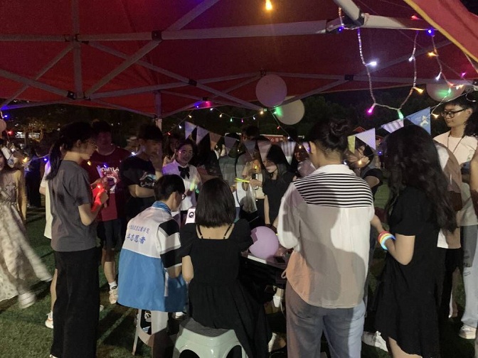 荧光心理游园会以心理健康为主题,创新性地将荧光晚会与游园会相结合,以娱乐游戏的形式丰富同学们的课余生活,在活动中宣传心理健康知识。游园会设置七大游戏挑战区,包含心有灵犀、舒尔特方格、圈我所想、积木大挑战、移花接木等。同学们完成一项游戏挑战后可获得一种颜色的荧光棒,集齐七种颜色荧光棒就可以获得一次抽奖机会。