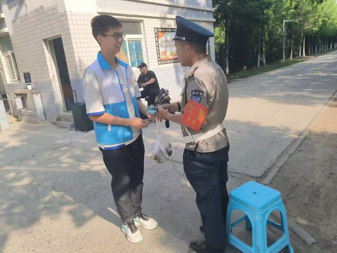 同学们将包好的粽子亲手送给了宿管阿姨、保安大爷和学院老师,表达了对他们的尊敬之意,更对他们的辛勤付出表示了感谢,增进了师生间的情谊。