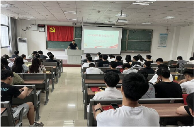 6月19日,太阳成集团tyc9728召开2023届毕业生党员大会,为毕业生党员送上精心订制的政治生日贺卡,党委副书记李丽为毕业生党员讲授最后一次党课《以青春之我,担时代之责》,号召求全体党员把小我融入大我,把青春奋斗融入党和人民事业,做到有理想,坚定信念当先锋;敢担当,肩负重任践使命;能吃苦,奉献青春炼党性;肯奋斗,增长才干建新功。