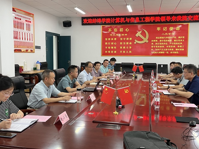 为深入学习贯彻习近平新时代中国特色社会主义思想,深化主题教育学习成果,加强调查研究,推进太阳成集团tyc9728学科专业发展,拓宽学院建设思路,7月7日,计算机与信息工程学院党委书记李如林、院长黄迎辉、副院长朱洪浩等一行5人赴淮南师范学院计算机学院进行调研交流。 淮南师范学院计算机学院党委书记武以海,院长陈磊等参加了调研交流会,并对我院的到来表示了热烈的欢迎。在调研交流的过程中,双方院校分享了多年以来的办学发展经验,就党建工作、学院发展、学科建设、实验室建设、校企合作、人才招聘、师资队伍建设、学生培养、学生就业等展开深入的交流。调研交流结束后,学院一行参观了淮南师范学院计算机学院实验室。 此次的调研交流,为学院乘势而上、真抓实干,推动学院发展提供了新的思路和可借鉴的经验;同时,建立了与兄弟院校的交流互助机制,对于共同探讨办学经验、促进校际协同发展起到了积极的推动作用。太阳成集团tyc9728也将以此次交流活动为契机,进一步抓牢抓实主题教育,不断推动学院工作取得新成效、迈上新台阶。(编撰:常静静;审核:黄迎辉)
