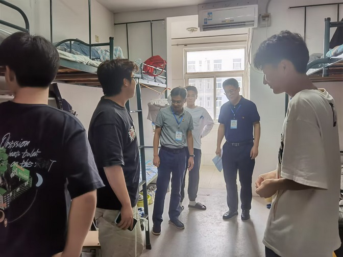 “家乡是哪里的?”“学校伙食还习惯不?”“这里的校园生活还适应不?”“对住宿条件还满意吗?”“有没有遇到什么困难?”领导和老师们亲切的问候迅速拉近了师生之间的距离。 访过程中,面对学院领导和老师的来访,新生们倍感惊喜、亲切。老师们了解新生住宿条件以及宿舍设备情况,以确保同学们能住得舒适、住得安心,并对新生报到后在校情况进行了详细了解,倾听他们的感受和面临的困难,及时解答了新生提出的一些疑问,给与了许多关于学业和生活上的建议。一是温情提醒,在校期间要注意身体健康,增强安全意识、防诈骗意识,保护好人身和财产安全;二是勉励关怀,鼓励同学们要明确目标和方向,珍惜大学时光,勤奋学习,刻苦钻研,夯实专业知识基础;三是殷切期望,希望同学们能尽快调整状态,主动适应大学学习生活,宿舍同学之间互相帮助,共同营造良好的生活环境和浓厚的学习氛围。