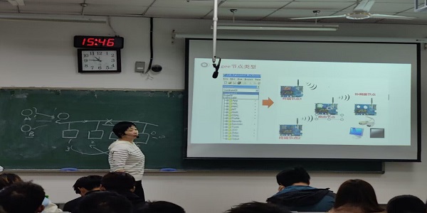 11月9日的优质教学示范课由第二届课程思政教学设计大赛一等奖获得者,物联网工程教研室的姜雪老师主讲。姜雪老师讲授的是《物联网通信技术》的“基于物联网的智能家居环境的搭建”模块。她以具体应用案例为抓手,将课程知识与突发事件防控应用相结合,利用专业技术解决实际问题,将技术服务社会的思想贯穿教学全过程。