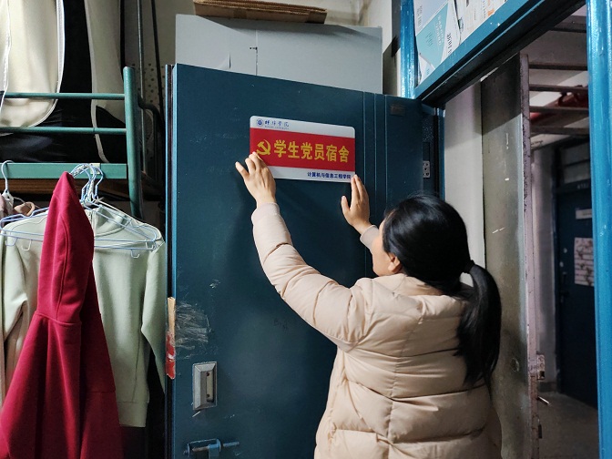 开展党员宿舍挂牌亮身份活动 为切实增强学生党员责任感、使命感,亮身份、树旗帜、作表率,充分发挥“一名党员一面旗帜,一间宿舍一个样板”的先锋模范作用,推进美丽宿舍建设,学院开展了党员宿舍挂牌亮身份活动。学生党员宿舍标志牌以红色为底色,融入中国共产党党徽,提醒学生党员时刻牢记身份,敢于亮明身份,在学习、生活等各个方面做表率,发挥学生党员先锋模范作用,全心全意为身边同学服务。