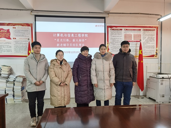 为进一步加强我院辅导员队伍专业化、职业化建设,切实帮助新进辅导员深入了解思政辅导员岗位职责和工作目标,全面提升辅导员综合素质与工作能力,12月19日上午,我院在重行楼404会议室举行了“星光引路,薪火相传”新老辅导员结对队帮扶仪式。仪式由学院党委副书记李丽主持,学院全体辅导员参加本次仪式。 仪式上,李丽向新入职辅导员表示了热烈欢迎,向一直以来辛勤工作的全体辅导员表示了最衷心的感谢。她指出,学院的辅导员队伍承载着全院师生及学生家庭的嘱托与期盼,我们必须夯实工作责任,不自轻,不自满,肯钻研,善引导。她强调,全体辅导员要牢记初心,明确辅导员工作是“学生的良师益友”,要用真理的力量感召学生,以深厚的理论功底赢得学生,全体辅导员要站在一起,肩并肩,心连心,手牵手,做可信、可敬、可靠的良师益友。会议最后,李丽宣布学院2023年辅导员结对帮扶安排,会议安排辅导员戴蓓、常静静作为新进辅导员汪碧玉珠、倪明宇、费正阳的指导老师,戴蓓和汪碧玉珠作了表态发言。 星光引路,薪火相传,通过本次新老辅导员结对帮扶活动,有效提升了我院新老辅导员的“体验感”和“参与度”,强化了新进辅导员入职体验,帮助其加速完成角色转换,快速适应工作节奏。同时,促进入职多年的辅导员群体重温入职初心,搭建互帮互助、共同成长的实践平台,助推辅导员工作形成育人合力,赋能高素质人才培养,书写学工育人精彩篇章。(撰稿:崔婉君 编辑:谢齐 审核:李丽)