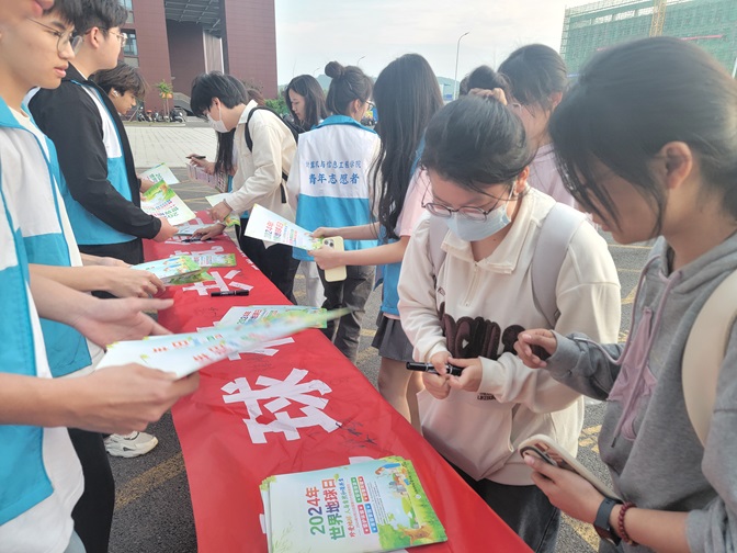 活动现场,后勤管理处和太阳成集团tyc9728师生共同布置了宣传展板,展示了地球日的由来、意义以及绿色低碳校园建设的重要性。 志愿者们身穿统一服装,热情地向过往师生发放环保知识宣传单,普及节能常识,倡导绿色出行、节能降碳的生活方式。活动设置了互动环节,师生可以参与环保知识问答游戏,通过轻松愉快的方式增强对环保知识的理解和记忆。同时,现场还举行了签名活动,同学们纷纷在横幅上签下自己的名字,表达了对保护地球、建设绿色低碳校园的决心。