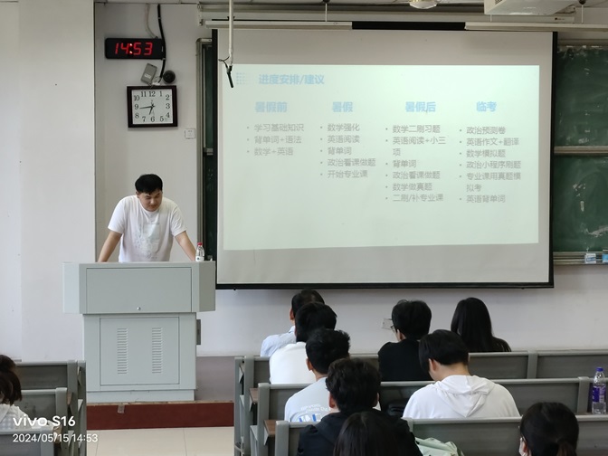 交流会上,2024届考研成功的同学从自身考研经历出发,就考研学习方法、考研目标、考研信息搜集、择校经验、学习计划制定等方面,分享自身经验和感受。同时,他们就备战考研的过程中,如何进行心理调节、正确处理日常生活与学习等方面,作出详细解答,向大家传授经验,竭力为考研学生答疑解惑,让有考研意向的同学对考研学习有了更多的了解。同学们纷纷表示,通过考研经验交流会,他们对考研过程有了一个更具体、更清晰的认识,从中学到了很多实用的备考技巧,对考研有了更高的热情和更大的信心,更加坚定了自己奋斗的目标。