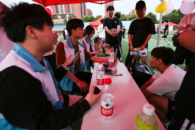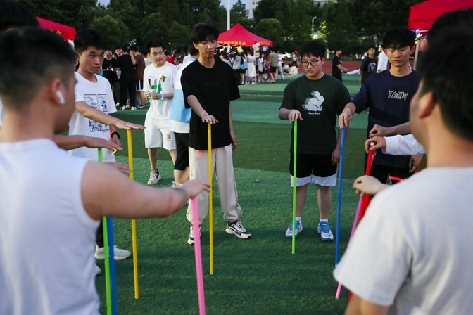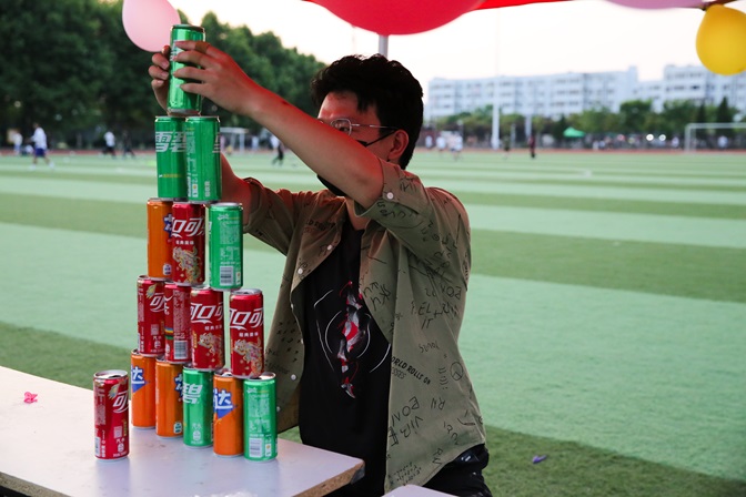 游园会现场,星光点点,彩光闪烁,仿佛置身于一个梦幻的游园世界。8个帐篷摊位依次排开,每个摊位都围绕不同的心理主题设置了趣味游戏。游戏摊位中有歌曲猜猜猜、带球赛跑、易拉罐积木、乒乓球过河、错误的乘法表、不倒森林、你画我猜等游戏项目,吸引了众多同学的参与。每个游戏都充满了挑战与乐趣,同学们在参与过程中不仅放松了心情,还增进了彼此之间的友谊。