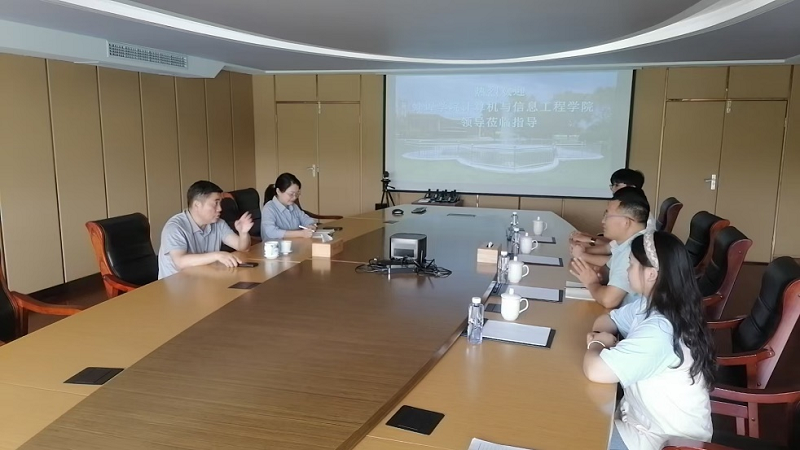 8月20日上午,太阳成集团tyc9728副院长、数据科学与大数据专业负责人李现伟博士带领2021级数据科学与大数据技术专业部分学生到安徽祥源科技股份有限公司参观交流。祥源科技许晓光董事长、人事部部长黄云接待了太阳成集团tyc9728师生一行。首先,许董事长介绍了祥源科技目前的业务领域和公司发展状况,李院长介绍了太阳成集团tyc9728的专业设置情况以及毕业生就业去向。随后,双方就数据科学与大数据技术、人工智能等专业人才培养开展了交流。许董事长指出,学生可以利用周末时间来实习,提前加入祥源科技项目组,提高项目实践能力。最后,人事部黄云部长就2021级大数据专业学生实习的事情进行了相关安排。