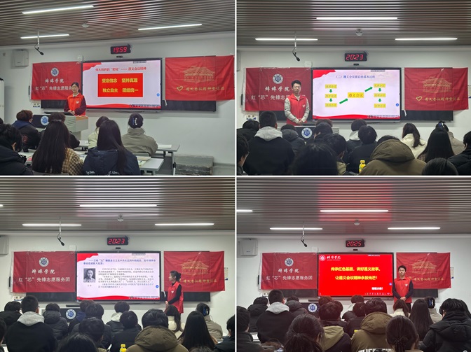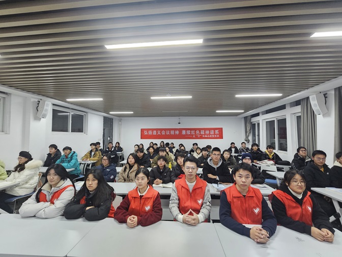 此次宣讲活动旨在引导青年学生深刻领会遵义会议的历史意义和精神内涵,赓续红色血脉,传承革命精神。活动筹备期间,红“芯”先锋志愿服务团的成员们积极搜集资料、整理史实,力求将遵义会议的精神实质和时代价值准确生动地传达给每一位同学。 宣讲过程中,志愿者们通过生动的讲述、丰富的图片和视频资料,以及互动问答的方式,带领同学们重温了遵义会议的历史背景、召开过程及深远影响。同学们被革命先辈们坚定的理想信念、不屈不挠的斗争精神所深深打动,纷纷表示要铭记历史、不忘初心,将遵义会议精神内化于心、外化于行。此外,宣讲活动还结合了新时代的发展要求,引导同学们思考如何将遵义会议精神与专业学习、社会实践相结合,鼓励大家在学习和生活中发扬革命传统,勇于担当、敢于创新。