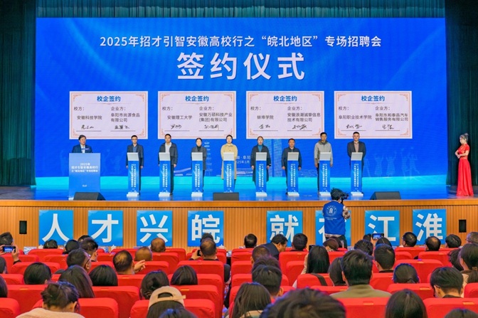 前期,学院精准调研摸排,对有皖北就业意愿的学生进行就业指导,引导学生认真准备简历、详细了解目标岗位需求和发展前景。现场,同学们积极投递简历,主动与企业招聘代表交流,了解用人单位情况。参加招聘会的同学表示,此次招聘会为他们提供了与皖北地区企业面对面交流的宝贵机会,拓宽了就业视野,增强了求职信心,收获满满,信心倍增,更加明确了未来的职业方向,也对自身的专业能力有了更清晰的认识。 在2025年招才引智安徽高校行之“皖北地区”专场招聘会启动仪式上,学院党委副书记李丽与安徽浪潮诚挚信息技术有限公司现场签订了就业实习协议。