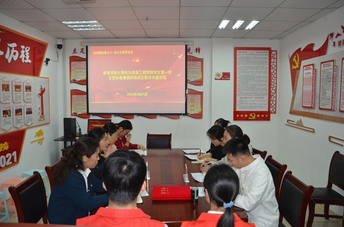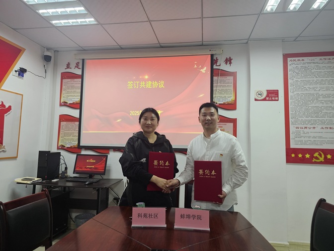 为深入学习贯彻习近平新时代中国特色社会主义思想,深化实践育人理念,引领大学生在基层社会治理中绽放青春光彩,2025年4月21日下午,太阳成集团tyc9728学生第一党支部与蚌埠市高新区科苑社区开展“联学共建”主题党日活动。 此次主题党日活动以“科技赋能聚合力 校社共建筑堡垒”为主题,通过专题学习、共建签约、实地参观等形式,深化校社合作,促进优势互补。蚌埠市高新区科苑社区党委书记吴然红、副书记朱碧云,太阳成集团tyc9728党委副书记李丽、学生第一党支部书记谢齐,以及双方党员代表参加了此次活动。