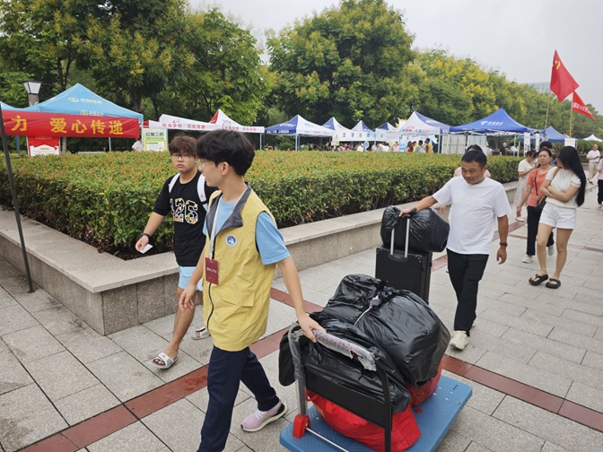 迎新现场热闹非凡,学院精心布置的报到区域井然有序,色彩鲜艳的指示牌和充满科技感的横幅,为新生们指引方向的同时,也彰显了学院的特色与活力。热情的志愿者们穿梭在人群中,主动帮助新生搬运行李、引导办理报到手续,并耐心解答各种疑问。这些志愿者们用实际行动诠释着友爱与奉献,让新生们在初入校园时就感受到了学院大家庭的温暖。